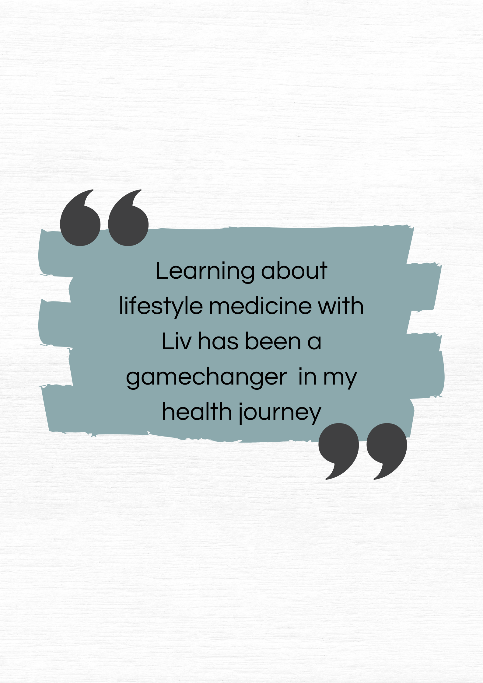 “What sets Liv apart is her commitment to empowering her clients. She has equipped me with the knowledge and tools I need to look after my health independently. This means I can revisit the information anytime I get off track."