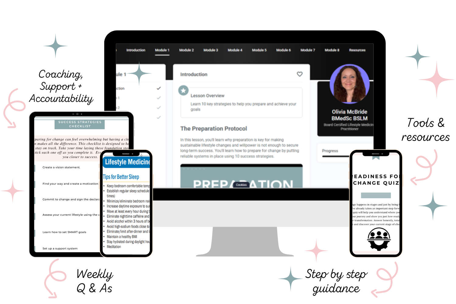 This is why the course is packed with so much support and guidance every step of the way. The community Facebook group, the wellness resource library, weekly check-ins and group coaching mean you're never alone. There is always someone to help motivate you, inspire you, keep you accountable and help you through the tough times. We work together to overcome any obstacles you face, help you navigate any challenges and provide all the support you need.